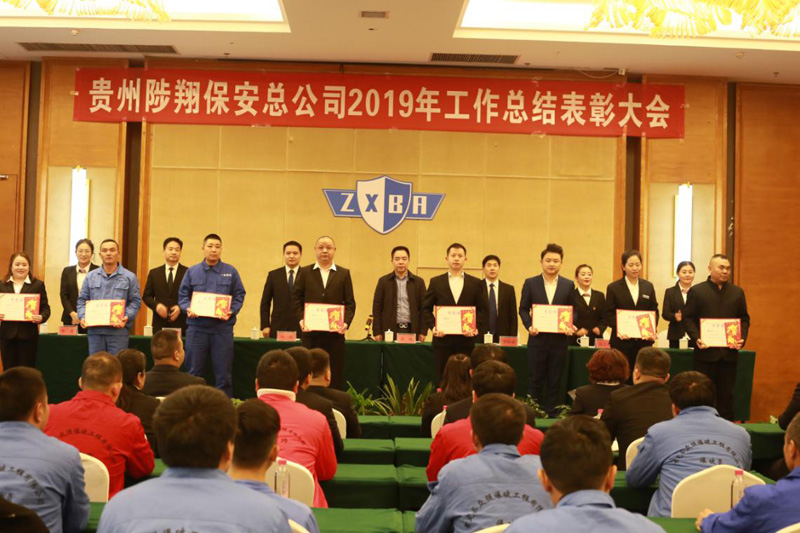 2020年1月20日下午,貴州陟翔保安總公司2019年度工作總結(jié)表彰大會(huì)在貴定縣御庭酒店會(huì)議室召開(kāi)。總公司股東李鵠、羅仕銀、總經(jīng)理馮波、副總經(jīng)理陳春生、余艷、財(cái)務(wù)總監(jiān)楊長(zhǎng)碧出席會(huì)議,各分公司、項(xiàng)目部、培訓(xùn)學(xué)校負(fù)責(zé)人、總公司全體人員、分公司員工代表、受到表彰的先進(jìn)單位代表和先進(jìn)個(gè)人參加會(huì)議?偣境(wù)副總經(jīng)理張小慶主持會(huì)議。